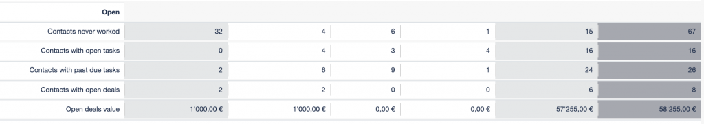 • Contacts with Past Due Tasks: il numero dei contatti con task scaduti