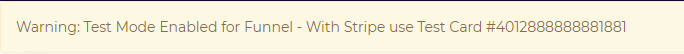 Open the funnel page where the order form is located: at the top of the page you should see a yellow bar containing the Card Number you must use (you can use random values for the Exp Date and the CVC, as long as the Expiration Date is set in the future)